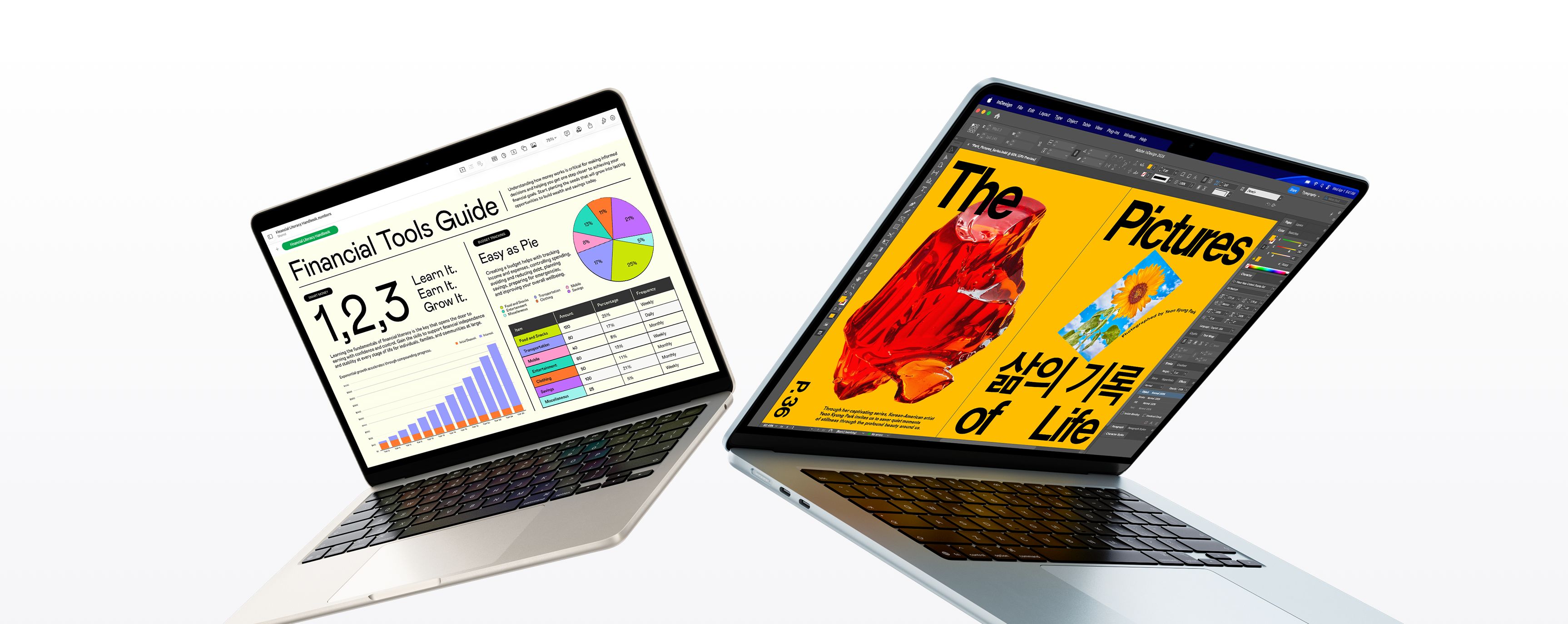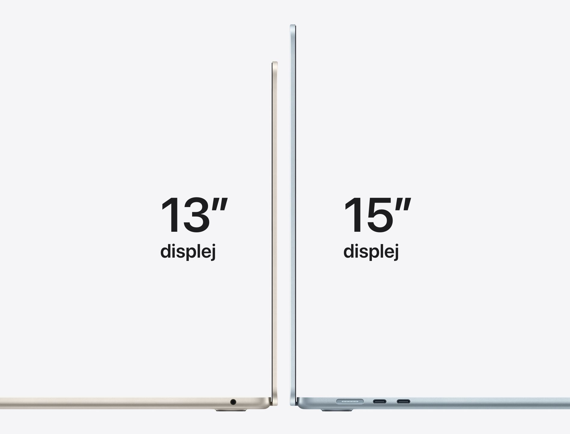 Dvě skvěle přenosné velikosti. 13palcový MacBook Air je ultimátní notebook, který si můžeš vzít všude s sebou, a 15palcový model ti na větší obrazovce poskytne víc prostoru na multitasking.